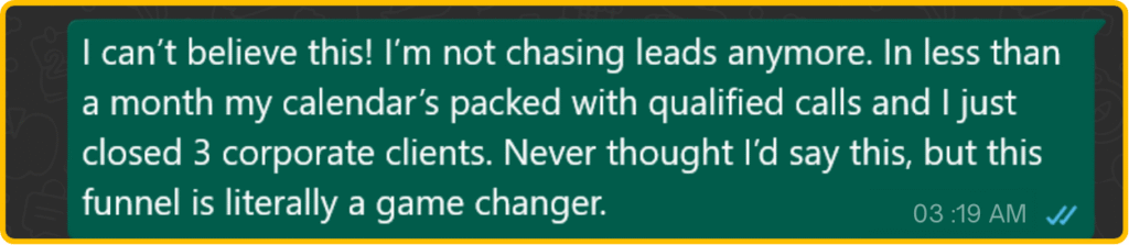The funnel automatically registers attendees, sends reminder emails/SMS, and follows up after the event to convert them into paying clients.